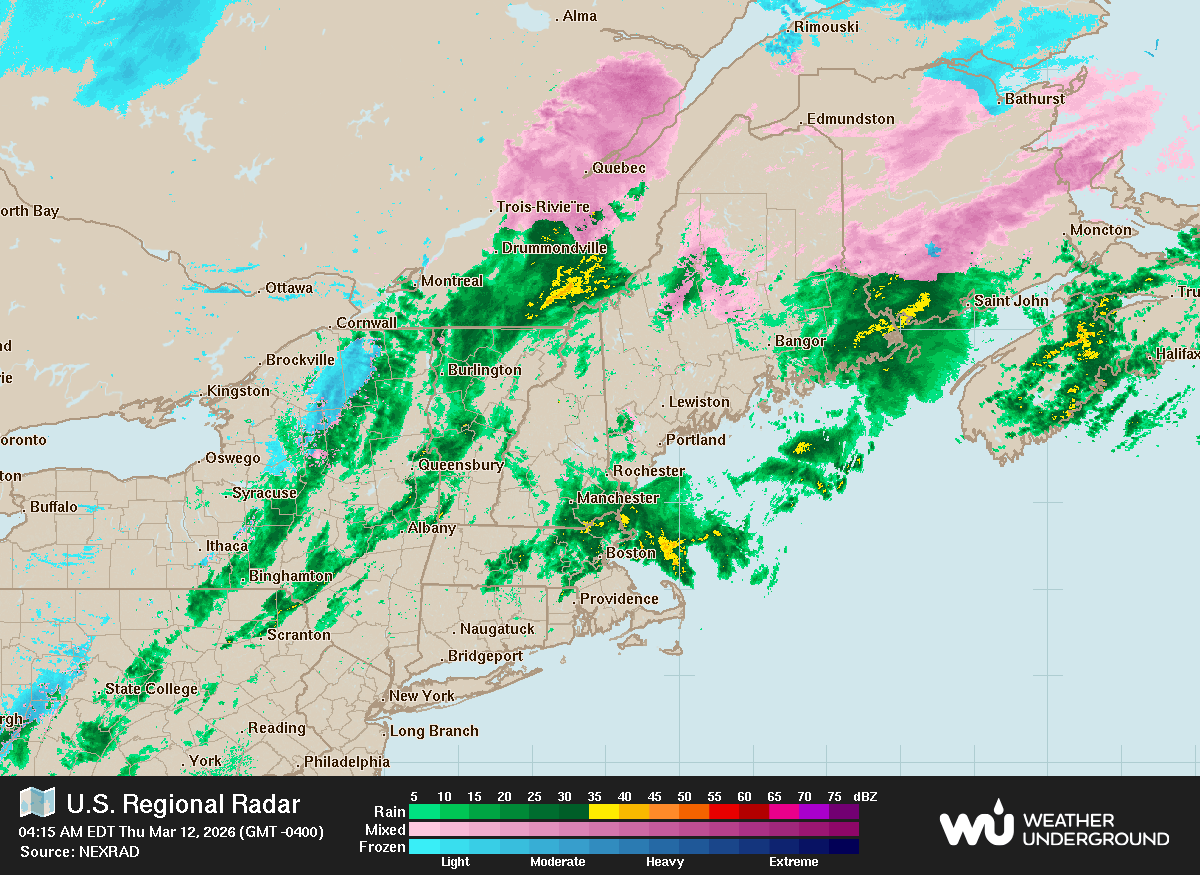 Zoom:  Zoom In  City Level  NH New Engaland Northeast US Entire US Zoom Out Animated: ON   Advisories: OFF   Track: OFF   Lightning: OFF