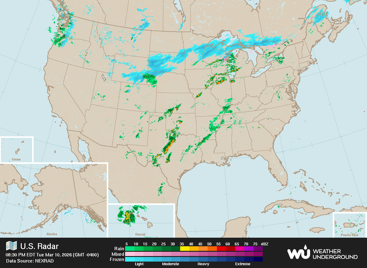 Radar and map images courtesy of Weather Underground.